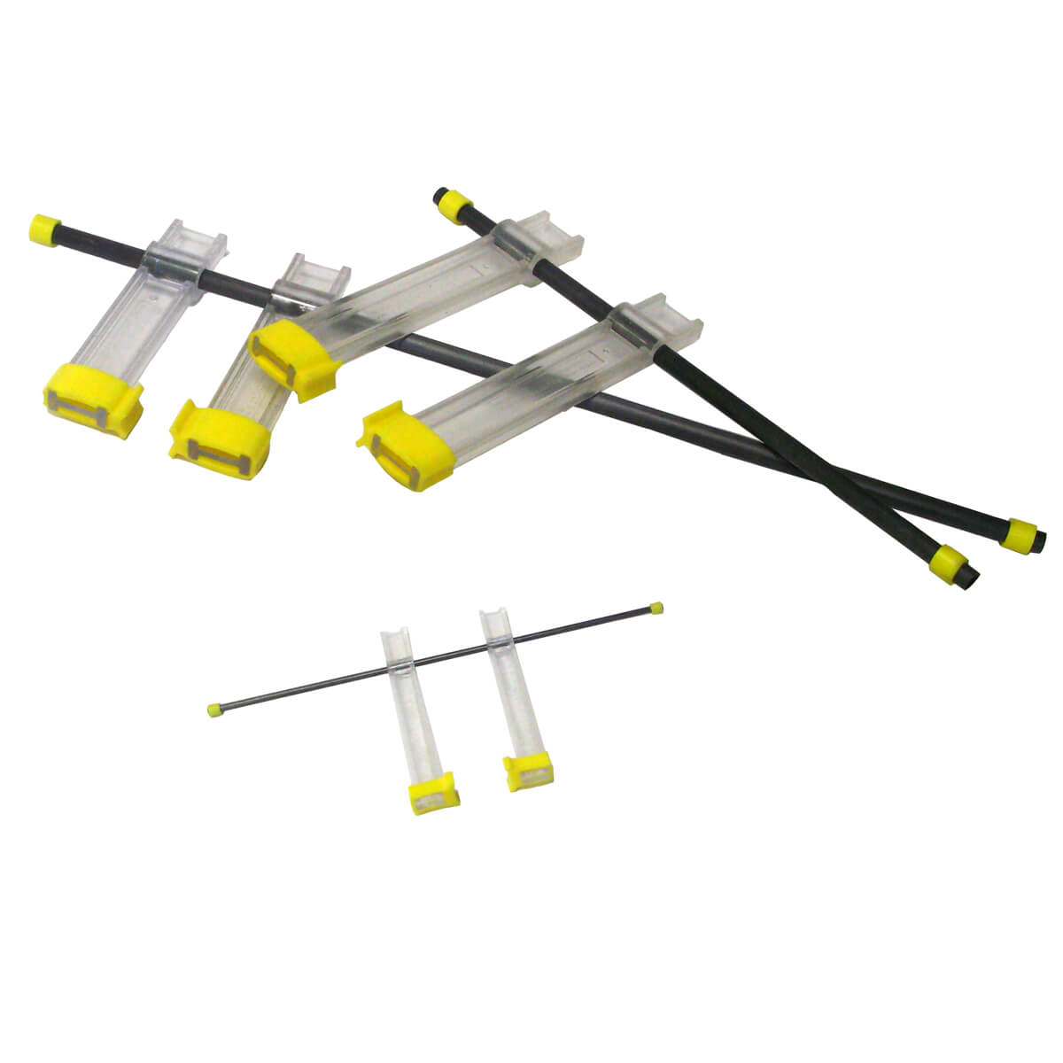 The 3" and 8" Length Beams are supplied with a 1/8" carbon beam, and are supplied with 3" jaws. The larger clamps are supplied with 3/8" carbon beams and have either a 4" or 6" long jaw. Berna Extender connections allow for the joining the rods end-to-end, are only compatible with the 13", 19" and 29" beams.
