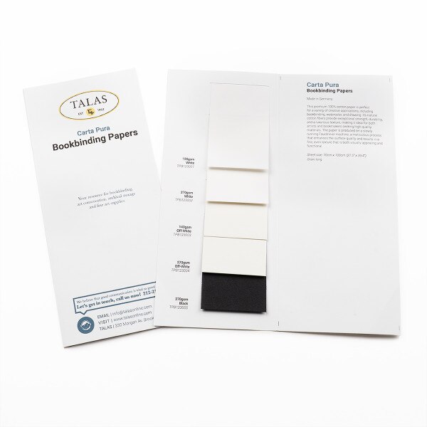 Sample book includes samples of all Carta Pura Bookbinding Papers. Sample Book Swatch Size: 2" x 3"