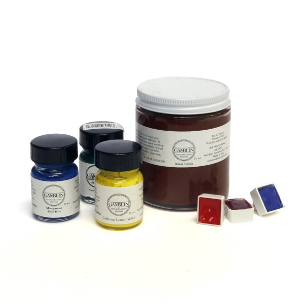 Gamblin Conservation Colors are made from a low molecular weight binder that has better optical properties and better handling properties than paints based on polymeric resin. These colors have proven useful on all techniques of inpainting including glazing. They have good covering power, are light fast, have excellent working properties, and exhibit little color change when dry. Gamblin Conservation Colors were designed to dry matte.